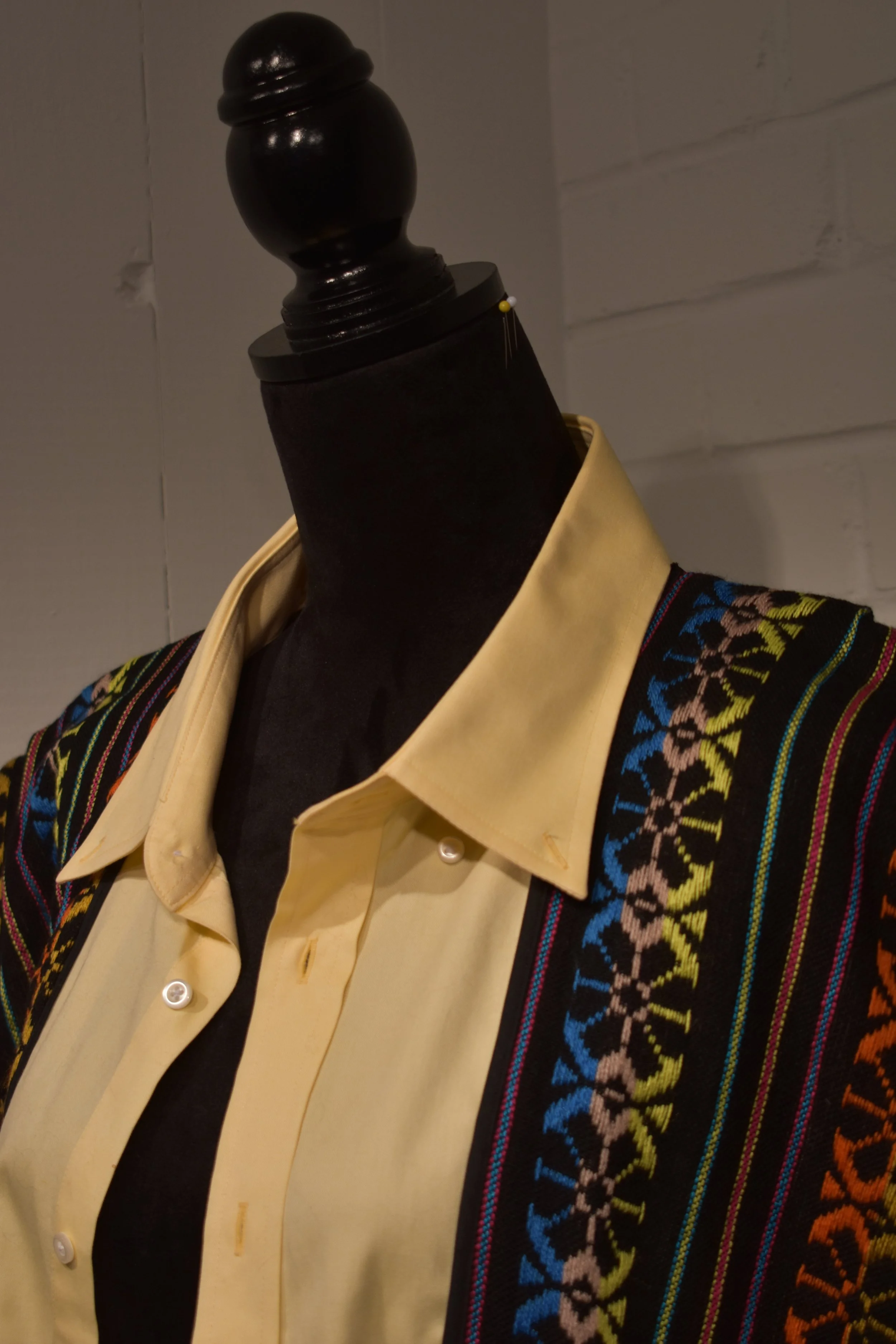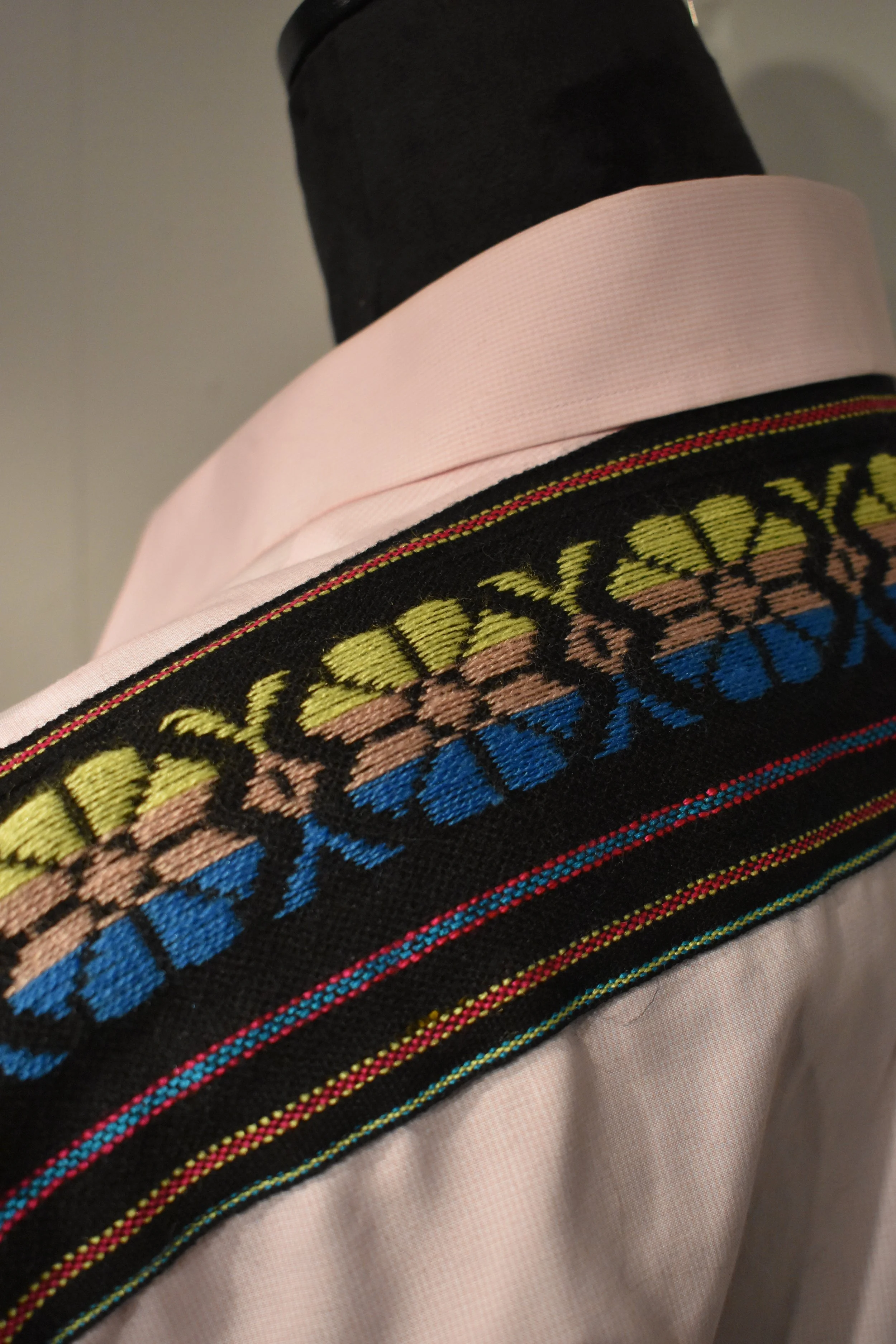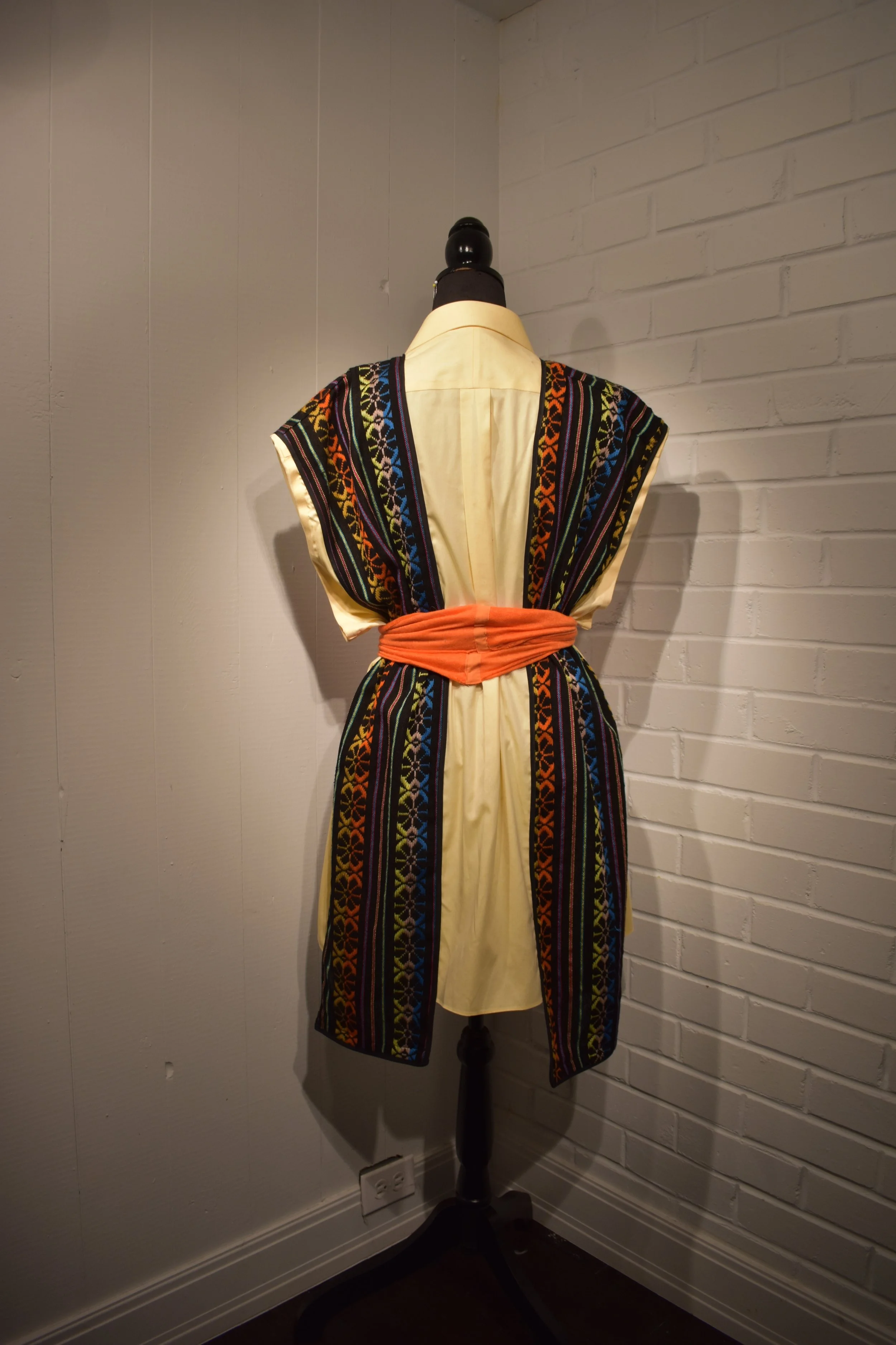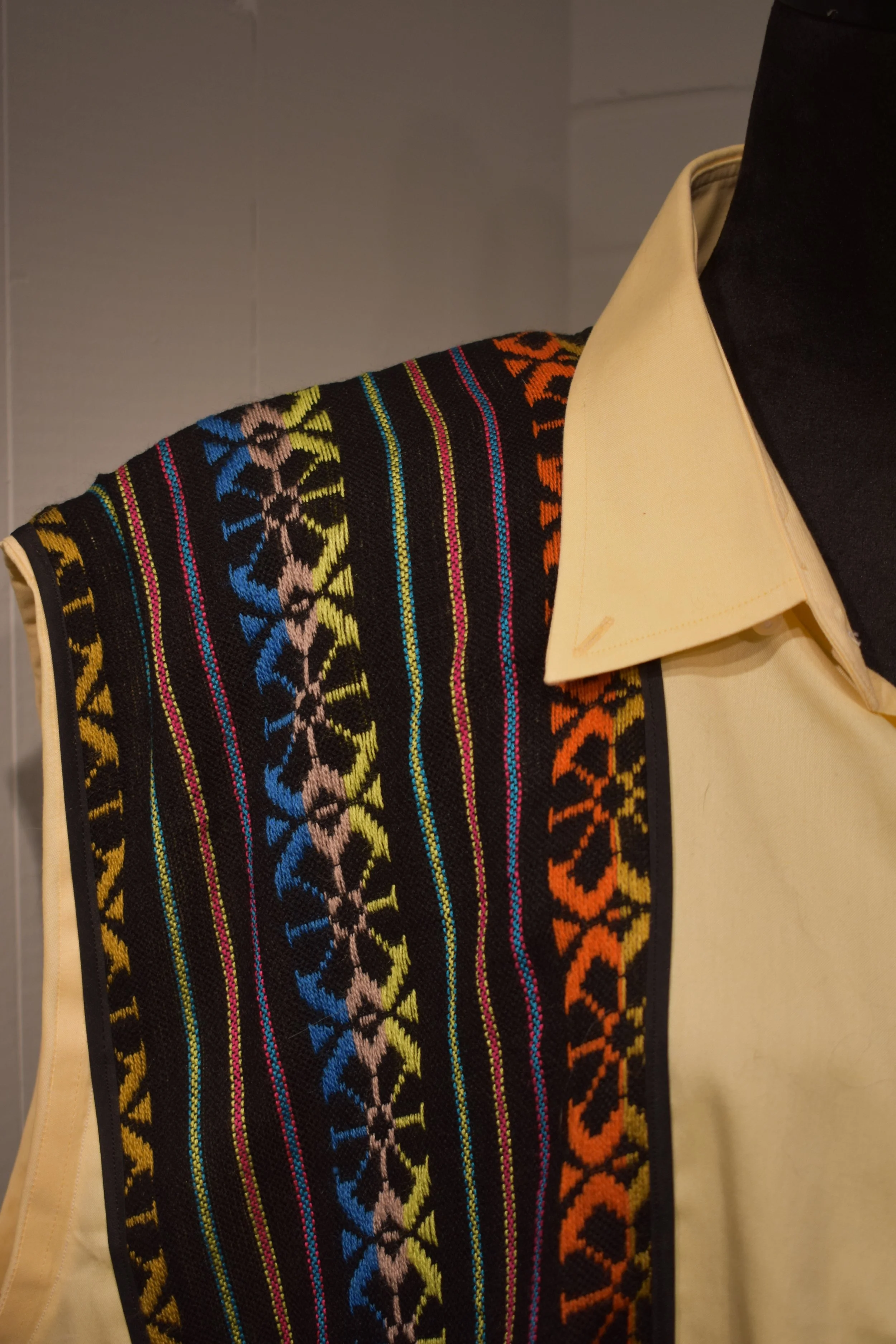 Materials: Denim base, traditional handwoven embroidered textiles from Mexico City, Mexico