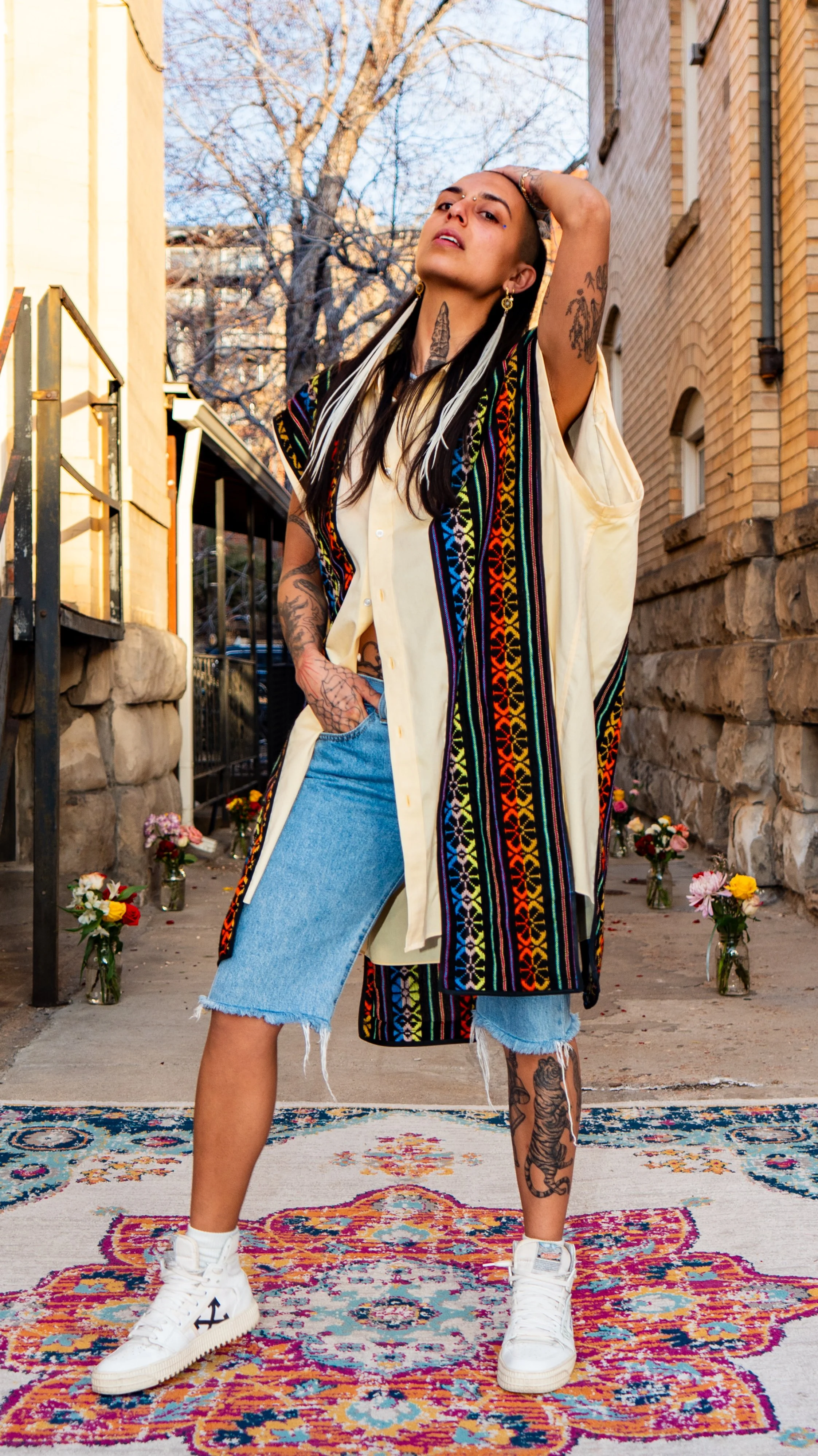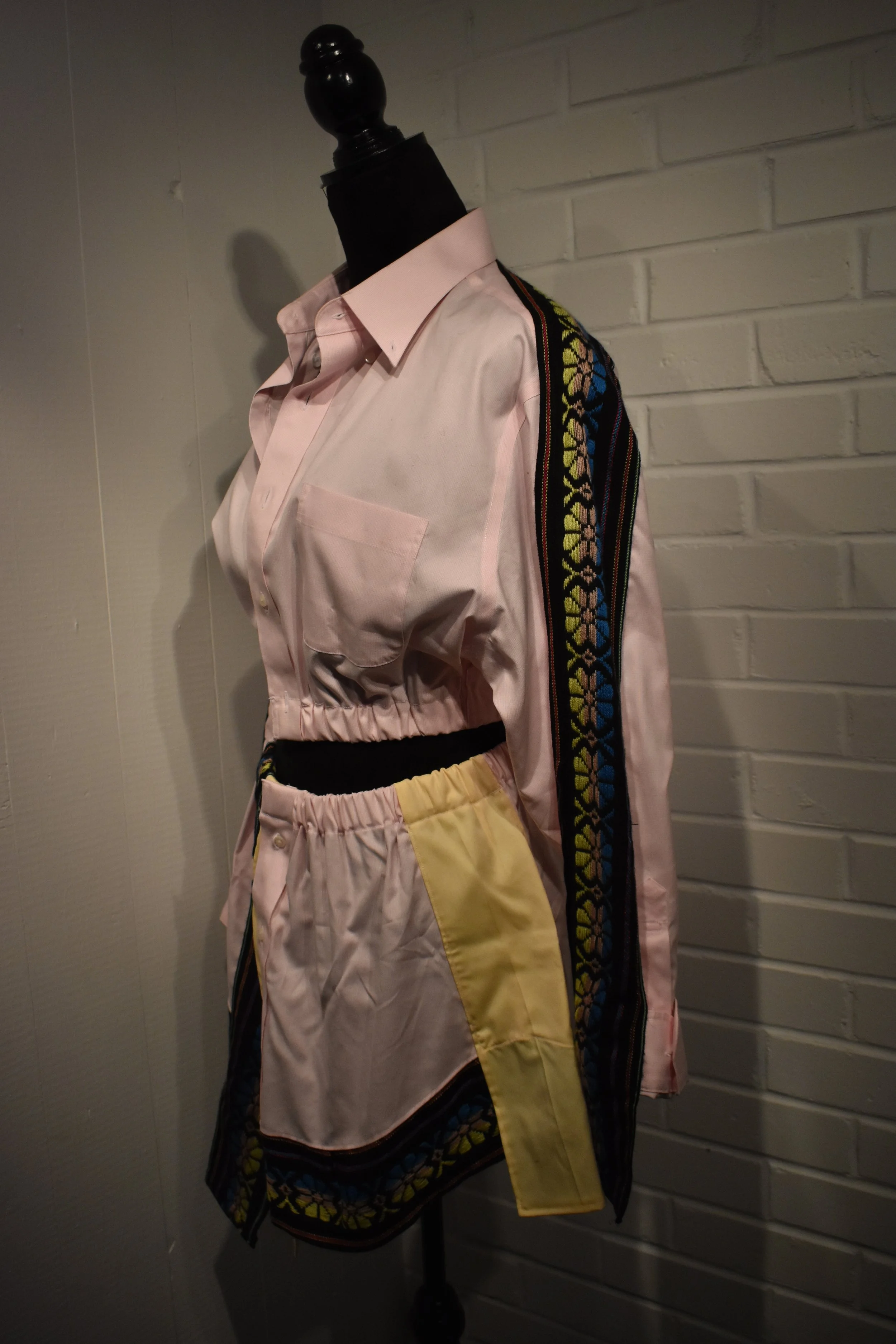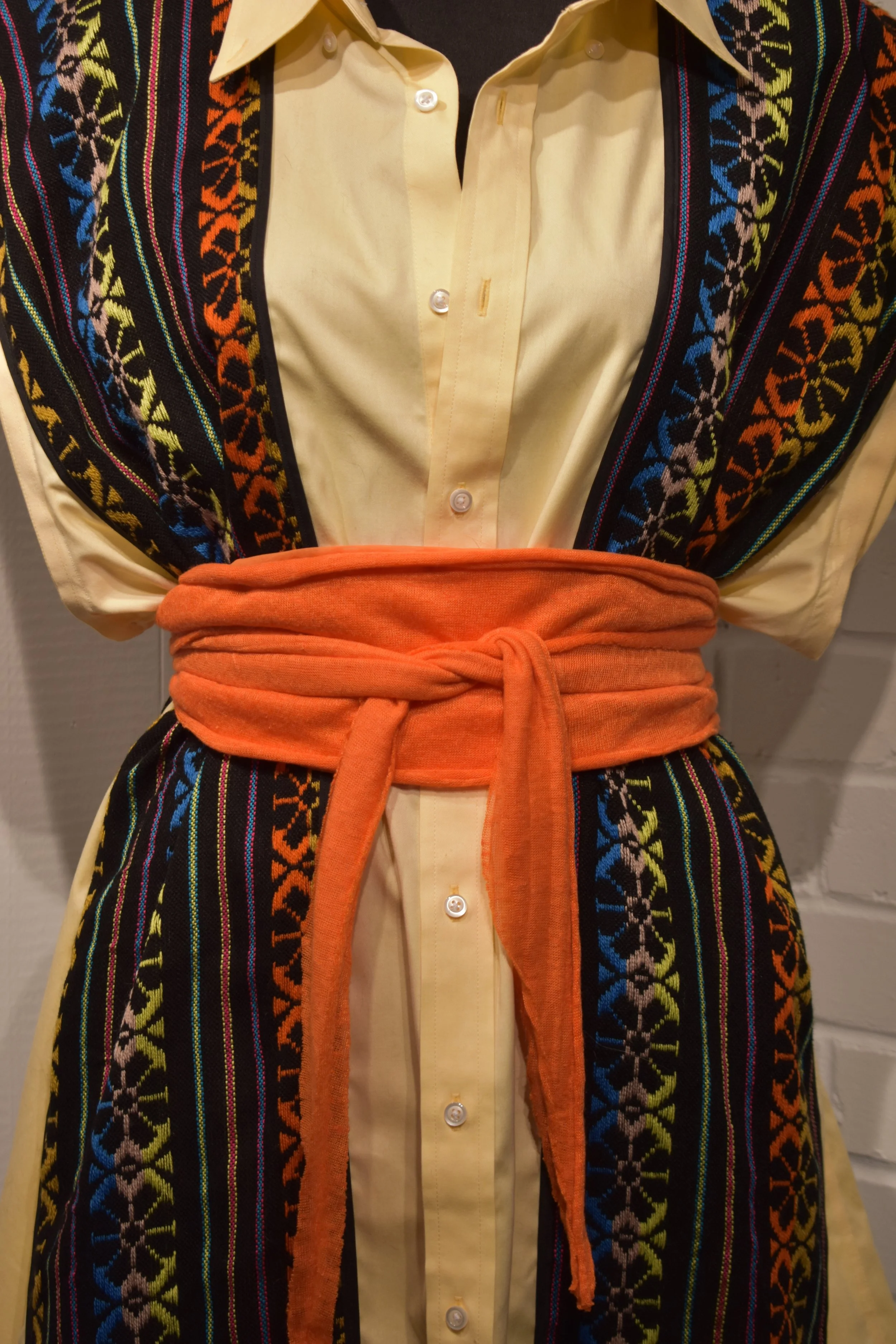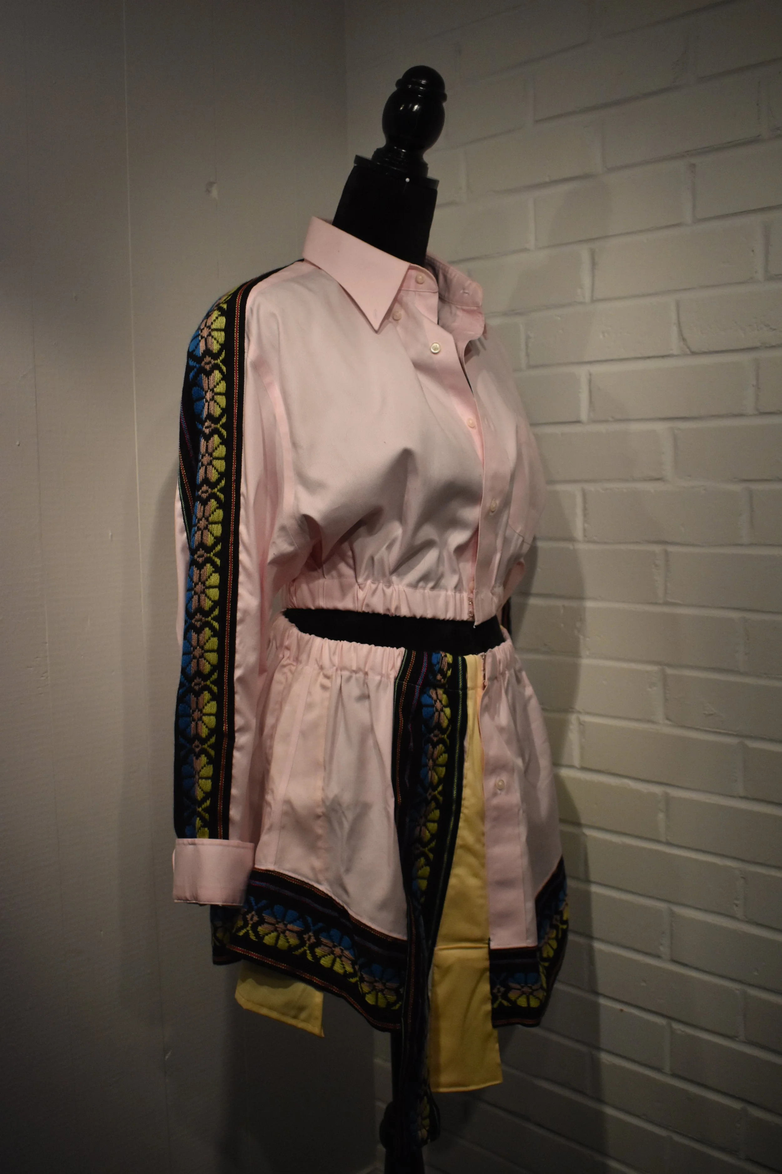 Materials: Denim base, traditional handwoven embroidered textiles from Mexico City, Mexico